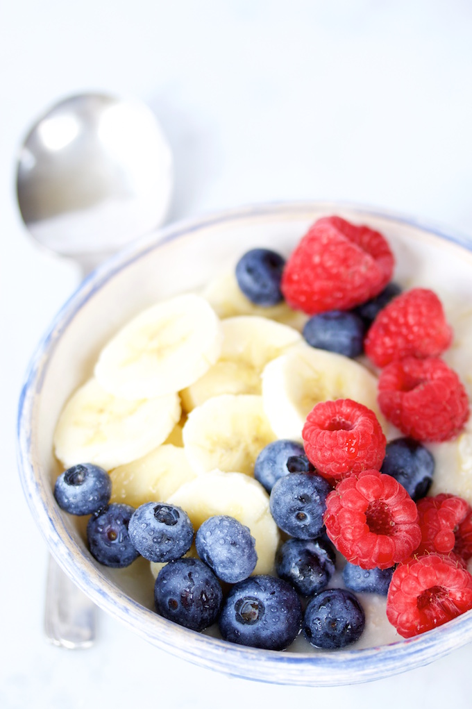 This sweet breakfast bowl is not your typical plate of hard, dry, and tasteless oatmeal. Quite the contrary, it is creamy, delicious oatmeal simmered with a pinch of salt and filled with berries and bananas.