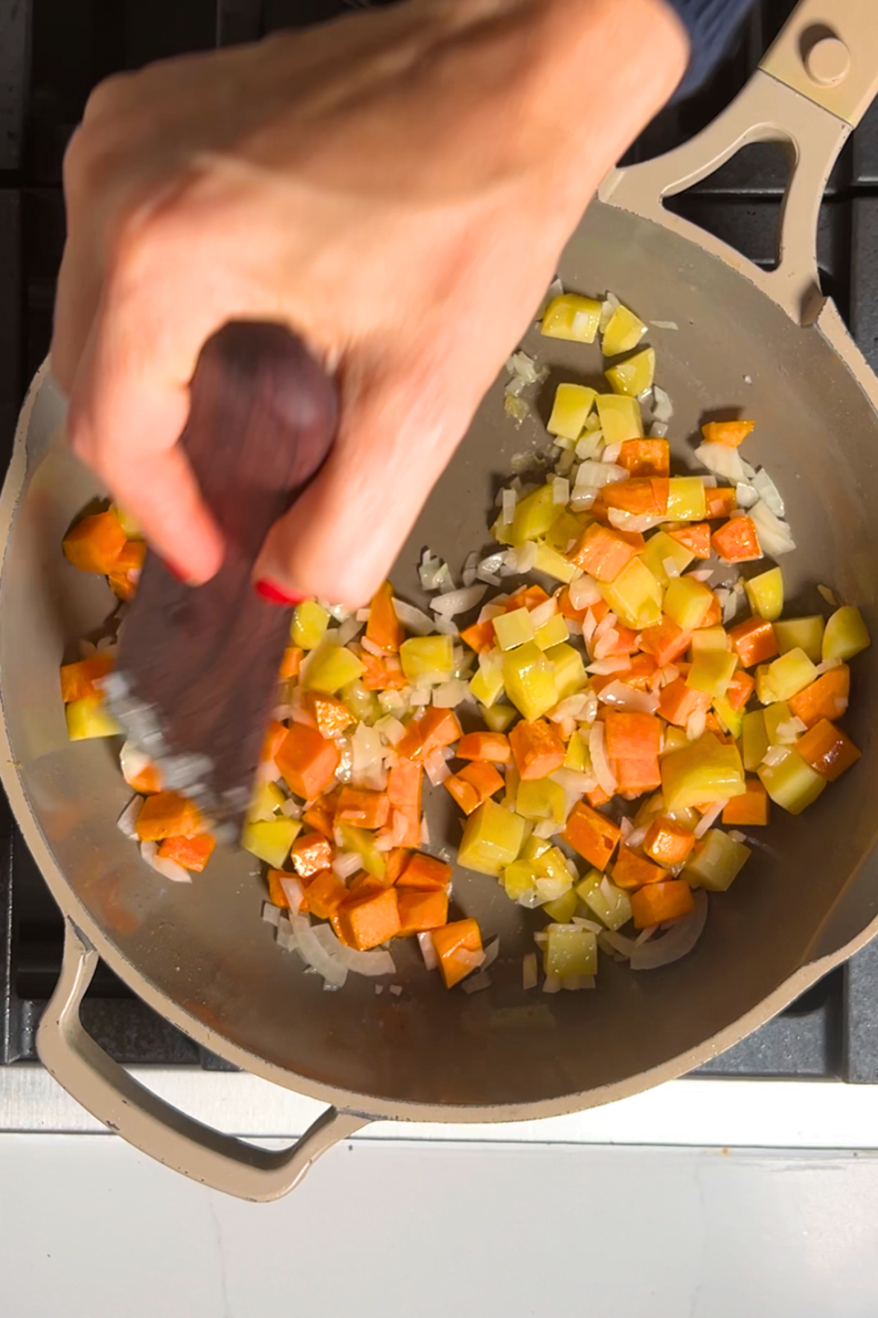 - Add onion: Stir in diced onion and cook until everything is golden and tender.