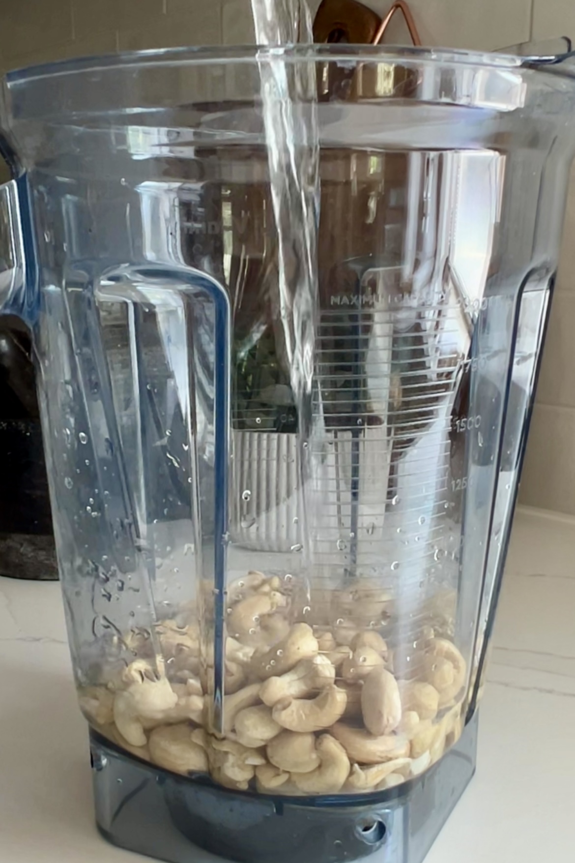 - Blend: Place the raw cashews in a high-speed blender with 4 cups of water. Blend on high for about 2-3 minutes until the mixture is completely smooth.