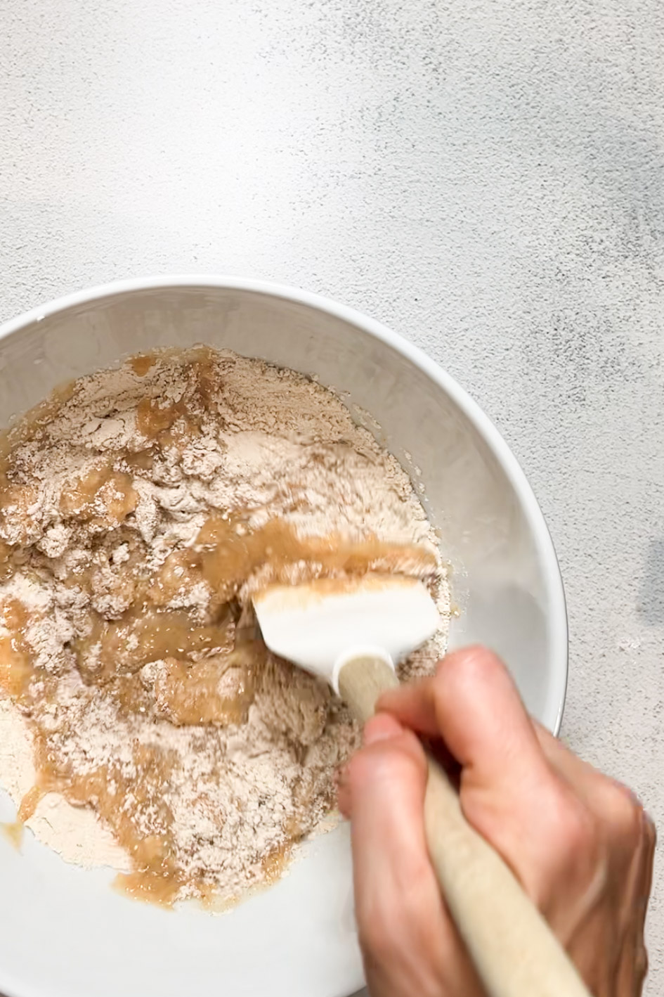 - Step 3 – Mix wet ingredients: In another bowl, combine applesauce, reduced apple cider, oil, vanilla, and apple cider vinegar.